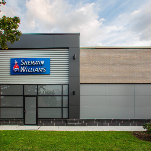 Flanking the South East corner of Stevenson Road and Gibb Street is the design for a 5 tenant Commercial Retail Unit. The building has a prominent exposure and attempts to have as much storefront glazing as possible while still maintaining a smaller back of house for each retail unit. The 2 corner tenants have almost two entire faces of transparency. Masonry veneer reflecting the Superstore to the south, clads the east portion of the building, while to the west a higher more contemporary design utilizes metal siding, and composite metal panels. An opened steel canopy links the different elevation materials.
